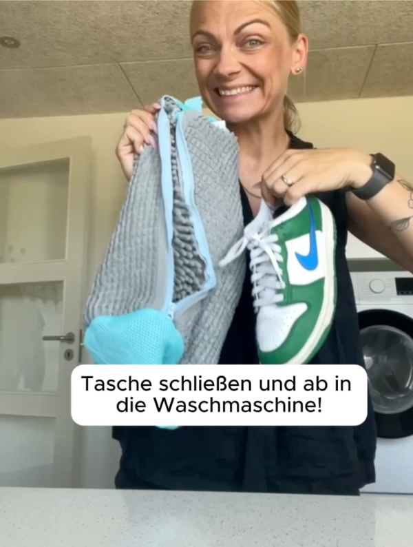 Nuestra bolsa de lavado protege tus zapatos en la lavadora para una limpieza suave y eficaz. ¡Deja de fregar a mano – deja que la máquina haga el trabajo!